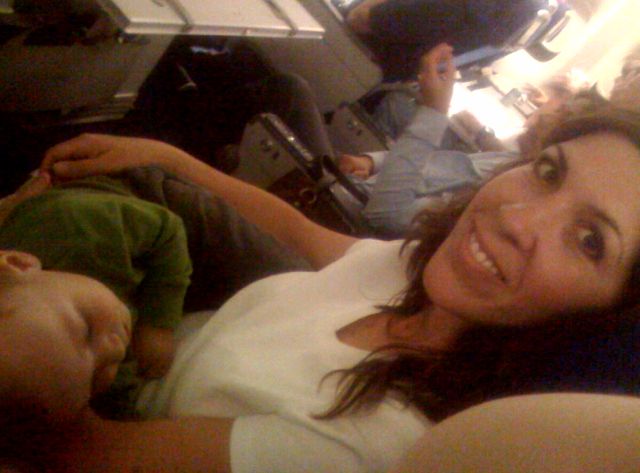 Well here’s the answer to the million dollar question! Max was a little anxious when we were taxiing out on the runway, but once we were in the air all he needed was a little nay-nay (milk) and he was out!