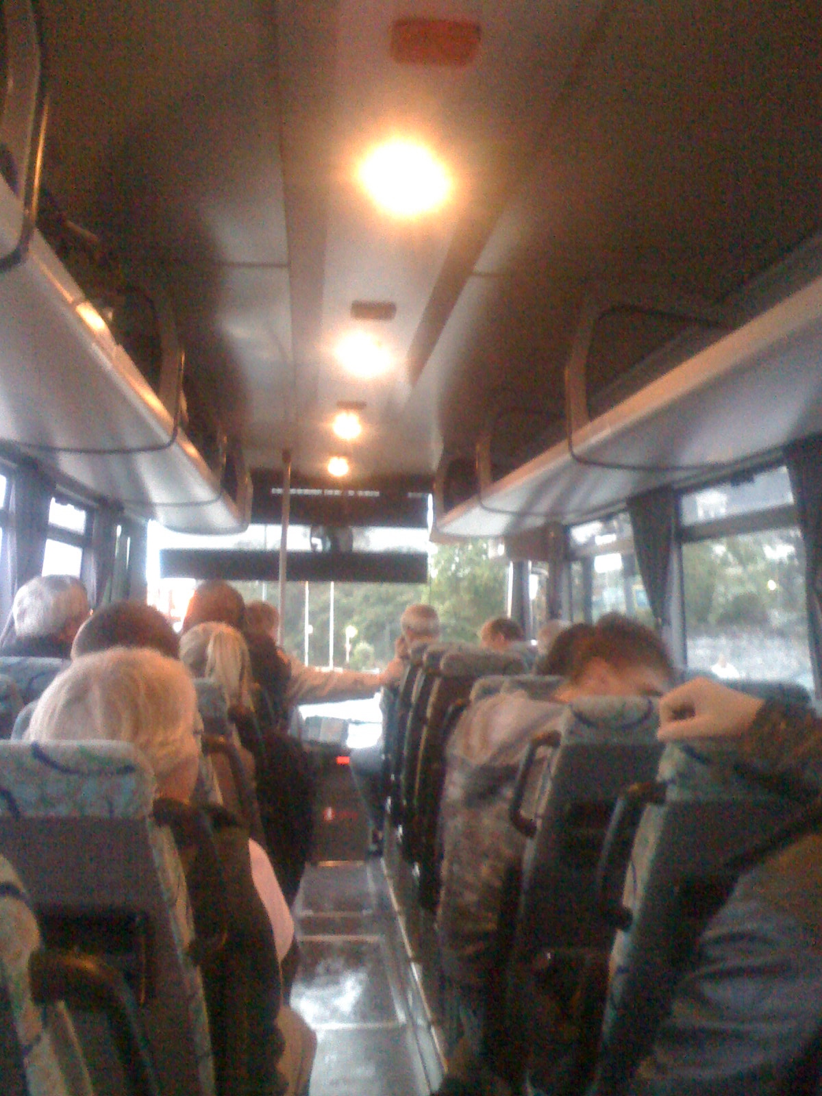 On the bus from the ferry terminal to the ferry (keeping our humor)